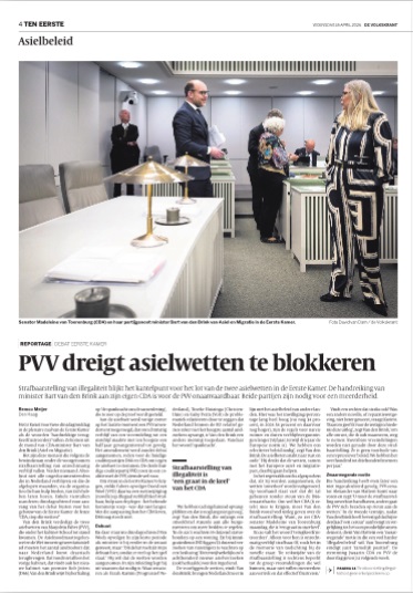 Met dezelfde dingen, maar in de kop slechts een tweederangs-leugen: alle kartelpartijen dreigen de asielwetten te blokkeren. Net als alle overige remmen op immigratie. En uit dezelfde krant (de Volkskrant, 15-04-2026, ingezonden brief van ...):