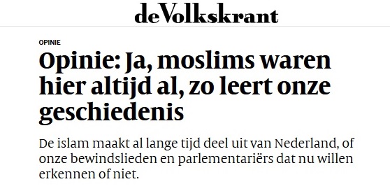 Wat is een onverdunde oproep tot islamisering. Het argument dat het slechts een opiniebijdrage is, wordt weerlegd door het feit dat de tegenovergestelde mening: "De islam is geen deel van Nederland", door de Vuilniskrant, de rest van de media, en de rest van de elite strikt verboden is en gecensureerd wordt En het gaat rustig door (de Volkskrant, 26-03-2026 , hoofdredactioneel commentaar, door Raoul du Pré):