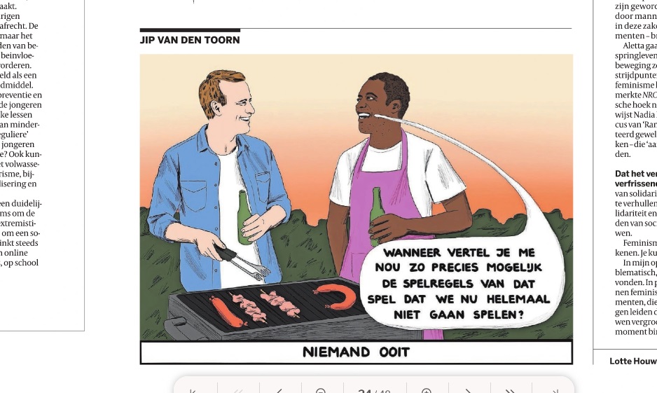 Waar het allemaal om gaat is dat het blanke succes maakt de biddertjes en negertjes er achtergebleven en achterlijk uitzien. Iets dat voor de wokistjes ongelukkierwijs dag ervoor in de Vuilniskrant stond (de Volkskrant, 07-04-2026, ingezonden brief van Theo Meuwese, Rockanje):